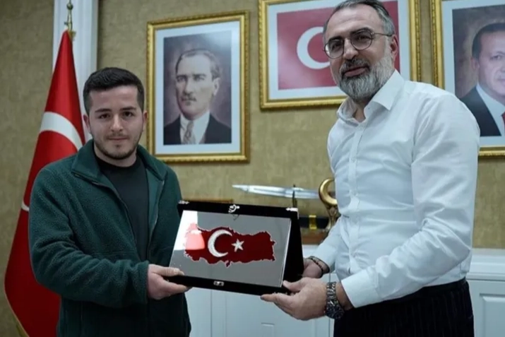 Başkan Erol, Türk Bayrağı'nı yerde bırakmayan kuryeyi ödüllendirdi