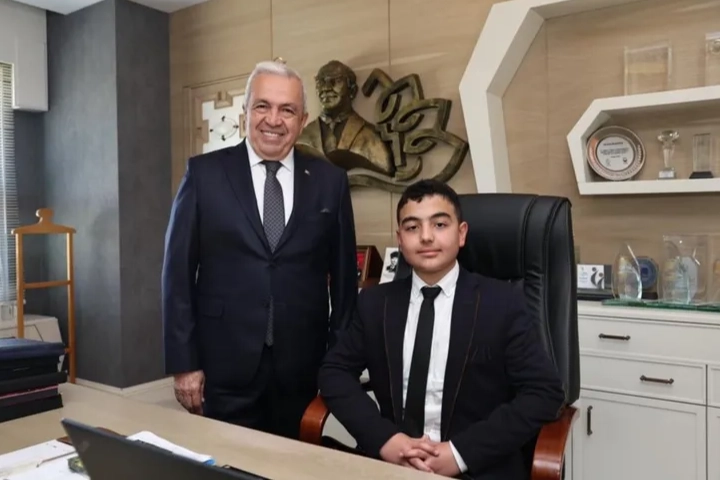 Erten, okullardaki eksikliklerin giderilmesi ve temiz çevre için hassas olunması talimatları verdi. 23 Nisan Ulusal Egemenlik ve Çocuk Bayramlarının bir geleneği olan, yöneticilerin makamlarını çocuklara devretmesi Nilüfer’de de güzel anlara sahne oldu. Nilüfer Belediye Başkanı Şadi Özdemir de makamını ortaokul öğrencisi Celal Aras Erten’e devretti. Nilüfer Cavit Çağlar Ortaokulu 7’nci sınıf öğrencileri Celal Aras Erten, arkadaşları Zeynep Nehir Kesen ve Hüsnü Mete Özcan, Müdür Yardımcısı Ali Zafer Şencan, Türkçe Öğretmeni Deniz Dilek Toroslu ile birlikte Nilüfer Belediye Başkanı Şadi Özdemir’i Halk Evi’ndeki makamında ziyaret ettiler. Başkan Şadi Özdemir, 23 Nisan Ulusal Egemenlik ve Çocuk Bayramı nedeniyle temsili olarak koltuğunu Celal Aras Erten’e devretti. Makama geçen çocuk Başkan, bazı konularda talimatlar verdi.