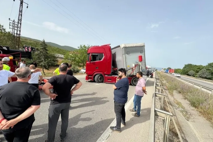 Kaza dün akşam saatlerinde Orhangazi - Gemlik yolu Gedelek trafik ışıklarında meydana geldi. Yalova'dan Bursa yönüne seyir halinde bulunan 48 yaşındaki Bülent Ç. idaresindeki 61 KN 278 plakalı tır yoldan çıkıp makas attı. Ekipler olay yerine geldiğinde sürücünün arı sokması sonucu şoka girip kaza yaptığını belirlediler. Hemen 112 ambulans ekibi istendi. Olay yerine gelen ambulans ekibi arının soktuğu şoktaki sürücüyü hastaneye kaldırdı. Tır makas attığı için yol kapandı. İstanbul Bursa yönüne giden sürücüler ise kaza ve yolun kapalı olması sebebiyle mahsur kaldılar. Uzun araç kuyruğu ekiplerin çalışması ve aracın kaldırılmasıyla sona erdi. Sürücünün hayati tehlikesinin bulunmadığı öğrenildi.