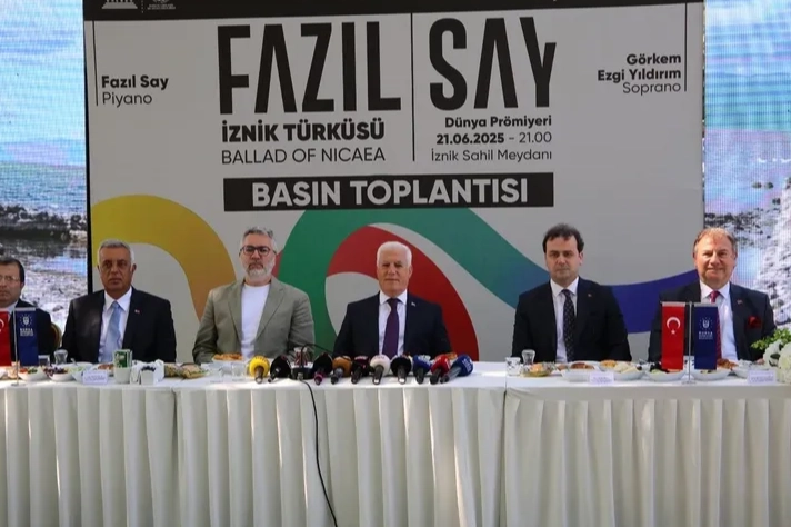 Bursa Büyükşehir Belediye Başkanı Mustafa Bozbey, dünyaca ünlü piyanist ve besteci Fazıl Say'ın 21 Haziran akşamı İznik'te vereceği konserde, "İznik Türküsü" adlı yeni eserinin dünya prömiyerini yapacağını duyurdu.