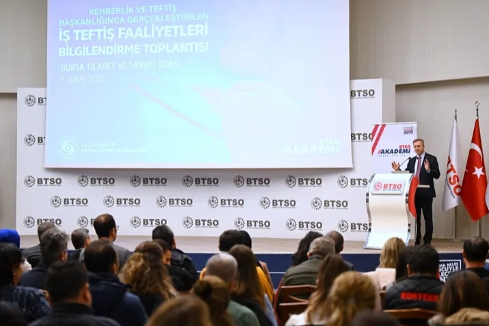 Rehberlik ve Teftiş Başkanlığı tarafından, Bursa Ticaret ve Sanayi Odası (BTSO) ev sahipliğinde “İş Teftiş Faaliyetleri Farkındalık Bilgilendirme Toplantısı” düzenlendi. BTSO Yönetim Kurulu Başkanı İbrahim Burkay, “Denetime dönük çalışmaları, işletmelerimize yük getiren bir zorunluluk olarak değil, eksikliklerimizi görmemizi sağlayan bir rehberlik hizmeti olarak değerlendirmeliyiz. Bu farkındalığın artmasına katkı sağlayan Rehberlik ve Teftiş Başkanlığımıza teşekkür ediyorum.” dedi.