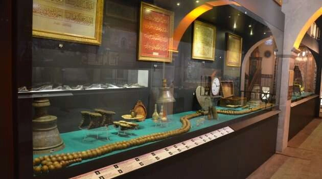 Ziyaretçilerini hayırseverlik, dayanışma ve zarafetinin izlerinde anlamlı bir yolculuğa çıkaran Bursa Vakıf Kültürü Müzesi’nde 500 farklı eser sergileniyor. Müzede ağırlıklı olarak Vakıflar Genel Müdürlüğü tarafından Bursa’da bulunan külliyelerden toplanan eserler, hat levhaları, şamdanlar, halı ve kilimler, Hilye-i Şerifler, dervişlerin kullandığı teberler, Üftade Hazretleri’nin eşyaları sergileniyor. Müzede en çok ilgi çeken eserlerin başında ise Muradiye Camii’nden vakfedilen devasa boyutlardaki 500 yılık el yazması Kur’an-ı Kerim ile Hz. Muhammed (SAV) efendimizin hırkasının sarıldığı Destimal-i Şerif geliyor. Bursa Vakıf Kültürü Müzesi’nde ayrıca Yeşil, Ulucami, Muradiye Medresesi, Kozahan ve Irgandı Köprüsü’nün birebir küçültülmüş minyatürü ile Kündekari tekniğiyle yapılmış Yeşil Türbe kapısı ve Osmanlı’da hayvanlara verilen önemin en güzel örneklerinden kuş evlerinin maketleri sergileniyor.
