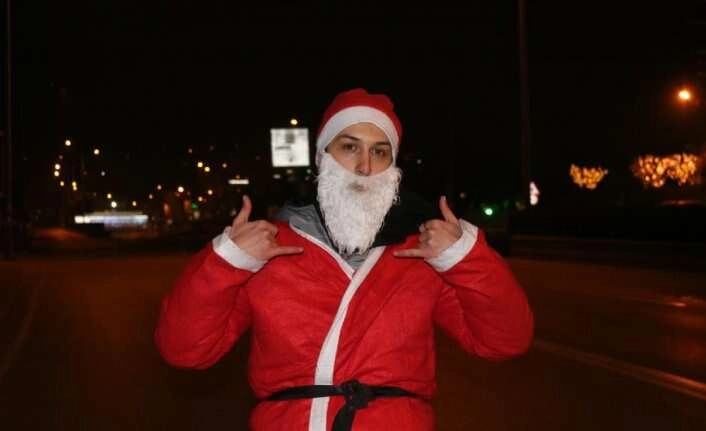 Geçen araçlara selam vererek yeni yıllarını kutlayan Noel Baba, yanına gelen kişilerle dans edip eğlenirken, yolda kalan bir vatandaşın aracını iterek yardım etti. O renkli anlar kameralara yansıdı. Bursa’da yılbaşını kutlamak isteyen Furkan Bayrak, Nilüfer İlçesinde bir eğlence merkezine gitti. Bir süre burada eğlenen Bayrak, eğlence merkezinden polis ekiplerince güvenlik maksadıyla gönderilince, anayola çıkarak, sürücüleri selamlamaya başladı. Baca yerine anayolda gezen Noel Baba kılığındaki Bayrak’ı gören bazı vatandaşlar ise araçlarından inip fotoğraf çektirip, dans ettiler. Bir süre sonra yolda kalan bir başka sürücünün aracını iterek destek veren Bayrak, ”Bir de Noel Baba kötü derler” dedi. O renkli anlar kameraya yansırken, Bayrak, “Bu sene hediye dağıtamadım, ama seneye millî piyango bana çıkarsa herkese hediye dağıtacağım” dedi.