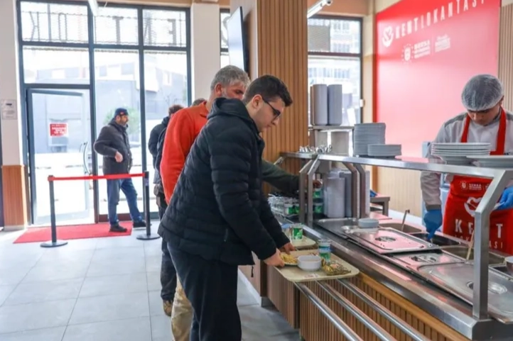 Sosyal belediyecilik anlayışıyla insan odaklı hizmetlerini sürdüren Bursa Büyükşehir Belediyesi; Merinos Parkı, Vatan ve Yiğitler mahallelerindeki kent lokantalarıyla vatandaşların uygun fiyata ve sağlıklı yemeğe ulaşabilmesini sağlıyor. 350 bin kişi faydalandı, 8 binden fazla askıda yemek bırakıldı Hijyenik şartlarda hazırlanmış, besleyici ve lezzetli 4 kap yemek, yanında ekmeği ve suyu ile birlikte vatandaşlara 80 TL’den sunulurken, kent lokantaları açıldıkları ilk günden itibaren Bursalılardan yoğun ilgi görüyor. Halkın en temel ihtiyaçlarından birine verilen net bir yanıt olan kent lokantalarında gönül rahatlığıyla yemeklerini yiyen vatandaşlar; temiz, dengeli ve besleyici yemeklerden her gün yararlanabiliyor. Açıldıkları günden itibaren kent lokantalarından yaklaşık 350 bin kişi faydalandı. Paylaşma ve dayanışma kültürünün önemli bir parçası olarak ise 8.000’den fazla askıda yemek bırakıldı. Bütçesini zorlamadan ve gönül rahatlığıyla yemeklerini yiyen vatandaşlar, kent lokantası uygulamasından büyük memnuniyet duyduklarını dile getirdi. Bursa’nın birçok noktasında kent lokantası açılması gerektiğini vurgulayan vatandaşlar, uygun fiyata lezzetli ve kaliteli yemek yeme imkanı sunan Bursa Büyükşehir Belediye Başkanı Mustafa Bozbey’e teşekkür etti.