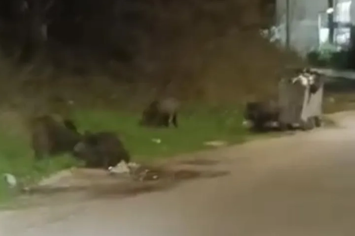 Bursa'da aç kalan domuz sürüsü şehre indi