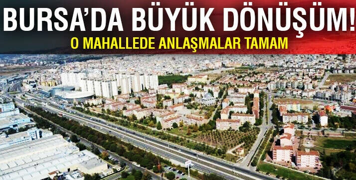 Bursa'da Akpınar Mahallesi sakinleri, kentsel dönüşümü gerçekleştirecek inşaat firmasıyla anlaşma imzalıyor.