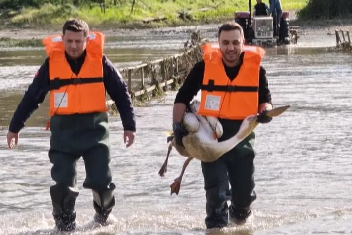 Bursa'da barajda mahsur kalan pelikan için seferber oldular