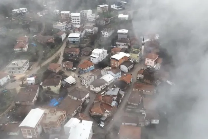 Bursa'da yüksek rakımdan dolayı bulutların içerisinde kalan Gökçeören Mahallesi adeta Trabzon yaylalarını andırdı.