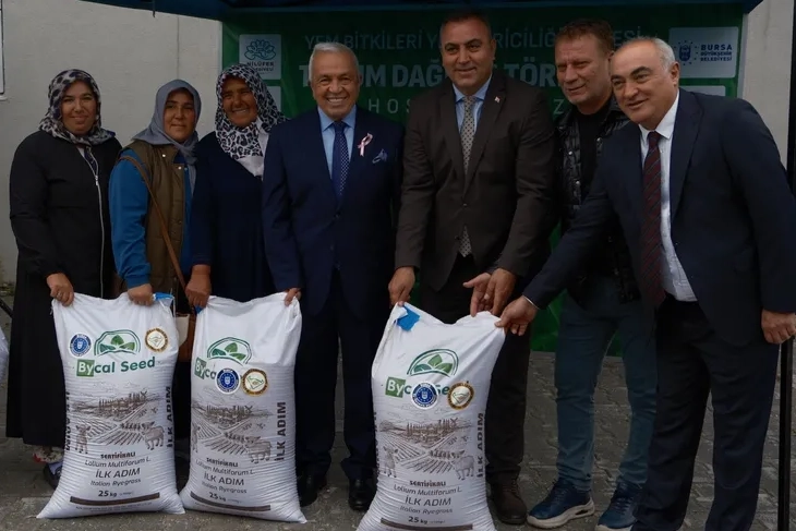 Proje ile hayvancılığa destek sağlayacaklarını dile getiren Özdemir, şöyle konuştu: "Tarım varsa hayat var. Bu yüzden tarım ve hayvancılığa desteklerimiz sürecek. Özellikle büyükbaş ve küçükbaş hayvanlarda yem konusunda sıkıntılar vardı. İşbirliğiyle bu sorunun çözümü noktasında proje hayata geçirdik. Nilüfer'de 13 bin 658 büyükbaş ve 35 bin 43 küçükbaş hayvan bulunuyor. Her yıl 40 bin dekarda yem bitkisi üretiliyor, bundan da 122 bin 800 ton kaba yem elde ediliyor. Bu miktar tüm ihtiyacı karşılamıyor." Bin 500 dekarda üretim yapılacak Bu nedenle İtalyan çim tohumu programını hayata geçirdiklerini belirten Özdemir, "300 çiftçimize 5 dekarlık arazisi için 25 kilogram tohum desteği sağlıyoruz. Yüzde 70'ini biz yüzde 30'unu çiftçiler karşılayacak. bin 500 dekarda üretim yapılacak. Hedefimiz üretim alanlarını artırmak, kırsal kalkınmayı güçlendirmektir. Topraklarla buluşacak bu tohumlar yeme, berekete dönüşecek" dedi. Mudanya ve Mustafakemalpaşa'da da dağıtılacak Bursa Büyükşehir Belediyesi Başkan Vekili Tarım Peyzaj A.Ş Yönetim Kurulu Başkanı Mehmet Aydın Saldız ise üreticiye can suyu olacak proje kapsamında bin 500 dekarda İtalyan çimi ekileceğini söyledi. Kaba yem ve yeşil ot ihtiyacının karşılanması amacıyla hayata geçirilen projenin önemine işaret eden Saldız, Mudanya ve Mustafakemalpaşa'da da aynı şekilde yem bitkisi tohumu dağıtacaklarını kaydetti. Büyükşehir Belediye Başkanı Mustafa Bozbey'in tarıma ayrı bir önem verdiğini dile getiren Saldız, "Bozbey'in tek hedefi var; üretime katkı sunmak, üreticinin yanında olmak. Damla sulama ve sıvı gübre üretip üreticilerimizle buluşturduk. Çiftçiye, tarıma desteklerimiz sürecek" dedi. İtalyan çim tohumlarını sırtlayan götürdü Konuşmaların ardından önce kadın sonra diğer çiftçilere İtalyan çimi tohumu dağıtımı yapıldı. 25 kilogramlık tohum çuvallarını kimi çiftçi sırtladı, kimisi ise omuzlayıp teşekkür ederek alandan ayrıldı.