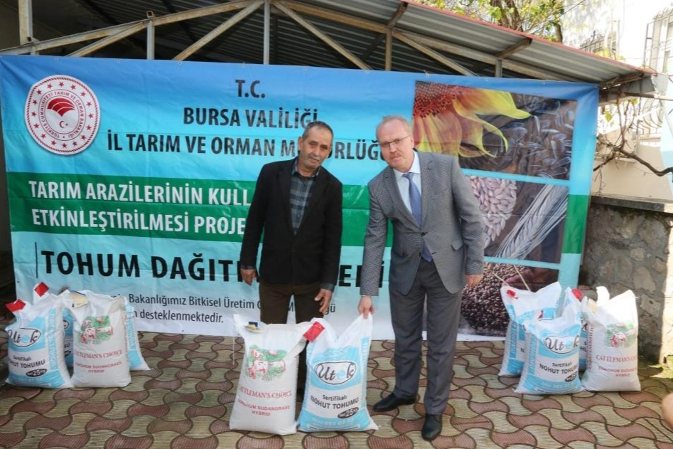 Tohum dağıtımına katılan Bursa Tarım ve Orman Müdür Yardımcısı Mehmet Sülün, projelerin yüzde 75 bakanlık desteği ile uygulandığını belirtti. Sülün, "Bakanlığımız bünyesinde uygulanan TAKE projesi kapsamında ilimiz 2025 yılında 7 proje ile aktif olarak hizmet etmektedir. Bu projeler için Bakanlığımız bütçesinden yaklaşık 5 milyon TL bütçe ayrılmış olup bunlardan nohut ve sorgum sudan otu tohumları Mustafakemalpaşa’da üreticilerimize dağıtılacaktır. Proje kapsamında dağıtımı yapılan tohumların yüzde 75’ini devletimiz yüzde 25'ini üreticilerimiz karşılıyor. Sorgum sudan otu tohumunu 50 üreticimize, nohut tohumunu ise 31 üreticimize dağıtılacaktır. Bu dağıtım ile yem bitkisi üretimini ve baklagil üretimini desteklemiş olacağız. Üretimde artış sağlamak için tüm çabamızla her zaman sizlerin yanındayız. Kaliteli üretim daha fazla satış demek olacaktır" dedi.