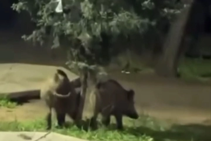 Kent ormanındaki piknik alanında vakit geçiren vatandaşlar, bir anda alana inen iki yaban domuzuyla karşılaştı. İnsanların bulunduğu noktaya kadar yaklaşan domuzlar, kısa süreli panik yaşanmasına neden oldu.
