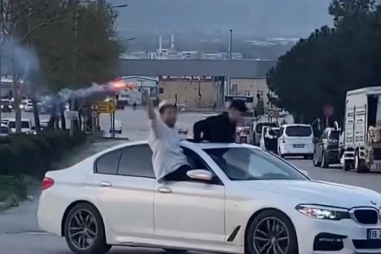 Bursa'da düğünde konvoy yapan sürücüler hem kendi canlarını hem de trafikteki diğer vatandaşları tehlikeye attı.