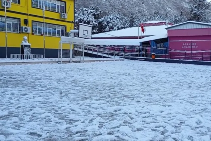 Gece boyunca aralıklarla devam eden kar yağışı sokakları beyaz örtüyle kaplarken, sabah saatlerinde okul çevresinde sessizlik hakim oldu. Okula gitmeyen öğrenciler karın tadını çıkarmayı seçti.