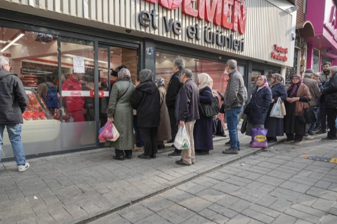 Yaklaşık 1 saat kuyrukta beklediğini belirten vatandaşlar, "Diğer kasaplarda kıyma 800-1000 liradan satıldığı için burayı tercih ettik. Burada sıradayız ama beklediğimize değiyor. Normal kasaplar buraya göre çok pahalı. Öne girmeye çalışıyorlar. Ramazan alışverişine çıktık. En uygun fiyata almaya çalışıyoruz" şeklinde konuştu.