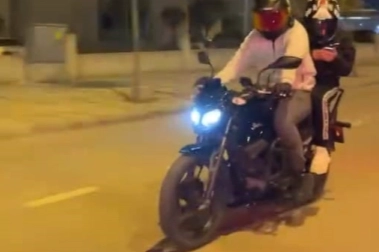 Kaza anı, çevredeki bir sürücünün cep telefonu kamerasına yansıdı. Görüntülerde, motosikletin ön tekerleğini kaldırmaya çalıştığı sırada devrildiği ve iki kişinin yola savrulduğu anlar yer alıyor.