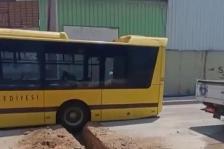 Bursa'nın Nilüfer ilçesi Vakıfköy Mahallesi'nde ilerleyen halk otobüsünün şoförü, alt yapı çalışması için kazı yapılan yerden geçmek istedi. Aracın ön kısmı çukuru atlatırken, arka teker havada asılı kaldı. Aracı bir türlü olduğu yerden çıkaramayan otobüs şoförü yolcuları tahliye ederken, yetkililerden yardım istedi. Bölgeye polis ve belediye ekibi sevk edildi. Araç iş makinası yardımı ile çıkarılırken, talihsiz kazada yaralanan olmadı.