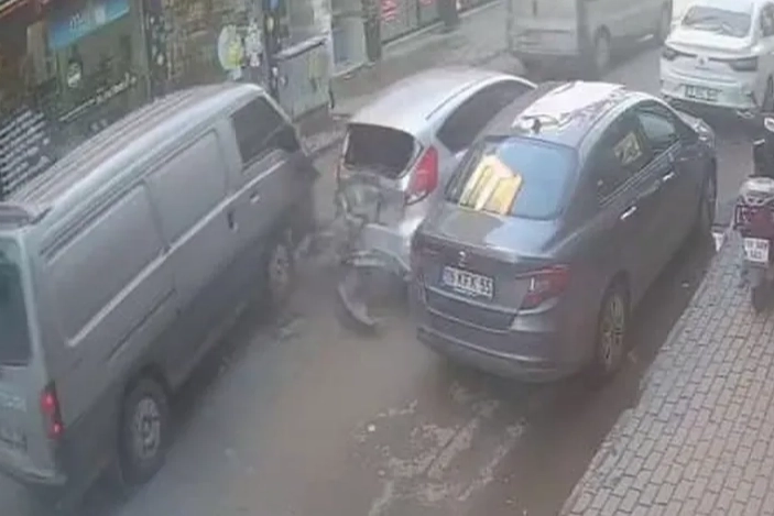 Kaza anı bir işyerinin güvenlik kamerasına saniye saniye yansırken, kazayla ilgili tahkikat sürüyor.
