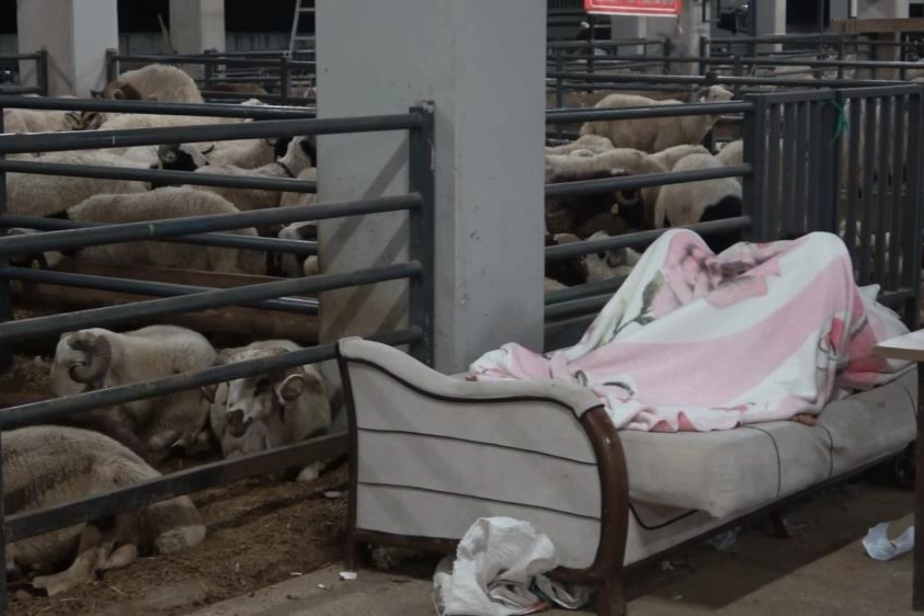 Bursa'da bayram telaşı başladı. Demirtaş'ta bulunan hayvan pazarına farklı illerden kurbanlık getiren satıcılar, gece müşteriler gidince hayvanlarla koyun koyuna yatıyor. Satıcılar, büyük emekle yetiştirdikleri hayvanlarının yanından bir an olsun ayrılmıyor. Bir yıl boyunca büyüttükleri hayvanları satmak için pazara gelen besiciler, hayvanların başından ayrılamadan gece gündüz nöbet tutuyor. Hayvanları için yaptıkları bölmelerde kurbanlıklarla birlikte uyuyan celepler, ahırlarda yemek yiyor ve dinleniyor. Ahırlarda battaniyeye sarılıp yatan satıcılar, piknik tüplerinde yemek ve çaylarını yaparak karınlarını doyuruyor. Hayvan pazarlarında seyyar helalar ve hayvan sahiplerinin banyo yapabilmesi için kapalı duşlar bulunuyor. Bazı çobanlar hırsızlıktan korktukları için koyunlarla beraber yattıklarını söyledi. Sabaha kadar sırayla nöbet tuttuklarını belirten Yunus Emre Beyaztaş, "Geceleri toplam iki kişi, biri yukarıda biri aşağıda olmak üzere hayvanlarımızın yanında yatıyoruz. Daha önce hırsızı görmedik ama sayımda 2-3 tane eksik oluyor. Bu da hırsız olduğunu ortaya çıkarıyor. Hırsız gelmiş, çalmış ve gitmiş. Profesyonel" dedi. Ayrıca, satıcılar gece boyunca kendi aralarında türkü söyleyerek zaman geçiriyor.