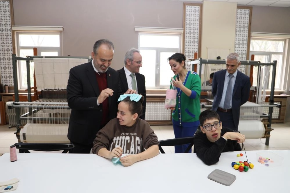 Yoğun temposuna rağmen, fırsat buldukça eğitim kurumlarını ziyaret edip, gençlerle tecrübelerini paylaşan Bursa Büyükşehir Belediye Başkanı Alinur Aktaş, 3 Aralık Dünya Engelliler Günü etkinlikleri çerçevesinde bu kez Mehmet Torun Aziz Torun Özel Eğitim Uygulama Okulu’nda eğitim gören özel öğrencilerle buluştu. İl Milli Eğitim Müdürü Dr. Ahmet Alireisoğlu ve Osmangazi İlçe Milli Eğitim Müdürü Metin Sezer ve Okul Müdürü Mesut Güzel ile birlikte dokuma, el sanatları ve seramik atölyelerinde çalışan özel öğrencileri ziyaret eden Başkan Aktaş, öğrencilerle sohbet edip, onlara başarılar diledi. Okulun konferans salonunda öğrencilere seslenen Başkan Aktaş, bir ülkenin gelişmişliğinin en önemli göstergelerinden bir tanesinin de engellilerine, yaşlılarına, ihtiyaç sahiplerine, mazlumlara ne kadar sahip çıktığıyla ilgili olduğunu söyledi. Türkiye’de son yıllarda bu konuda önemli bir mesafe alındığının altını çizen Başkan Aktaş, “Özellikle annelerinizin çok daha büyük fedakarlıklar yaptığını biliyoruz. Annelerinizi çok sevin. Onlara sahip çıkın. Onlar sizi ilgileriyle, alakalarıyla bazen gözyaşlarıyla bazen de o sıcacık yürekleriyle hayata hazırlıyorlar. Bu güzel okulda sizin meslek sahibi olmanız, hayata hazırlanmanız, engelleri daha kolay aşmanız noktasında eğitimler veriliyor. İnşallah daha nice yıllar bu kurum hizmet eder. Çocuklarımızın hayatına dokunur. Onları hayatı hazırlar. Çocuklar, hayatta hiçbir şey imkansız değil. Kendinize güvenin, ‘ben yaparım’ diye kendinize inanın. Ama emek edin. Gayretinizi ortaya koyun. İnşallah sizler de bir gün çok iyi yerlere geleceksiniz. Ben buna yürekten inanıyorum” dedi. İl Milli Eğitim Müdürü Dr. Ahmet Alireisoğlu da “Bakarken gözlerinizde heyecan olduğunda insanın engeli olmaz. Severken insanın engeli olmaz. Merhamet gösterirken insanın engeli olmaz. Dolayısıyla böyle bir dünyayı burada biraz daha iyi, biraz daha net gördük. Tabii ki bu okulda yaklaşık 250 öğrencimiz, il düzeyinde de yaklaşık 2500 bu şekilde üzerine titremek durumunda olduğumuz, ehemmiyet göstermek zorunda olduğumuz gençlerimiz, çocuklarımız var. Onlar bizim için önemli, değerli. Bu şekilde ilimizde 25 tane okulumuz var ve bunları geliştirmek için canla başla mücadele ediyoruz” diye konuştu. Okul Müdürü Mesut Güzel de özel çocukları hayata hazırlamak, onların kendi ayakları üzerinde durabilen, kendi kendine yetebilen bir birey olarak yetişmelerine katkı sağlamak için var güçleriyle çalıştıklarının altını çizdi.