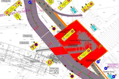 İstasyonu'nun giriş ve çıkış yapılarının imalatını gerçekleştirebilmek adına, Sanayi Caddesi üzerindeki mevcut 6 şeritlik yolun deplase işlemi tamamlandı.