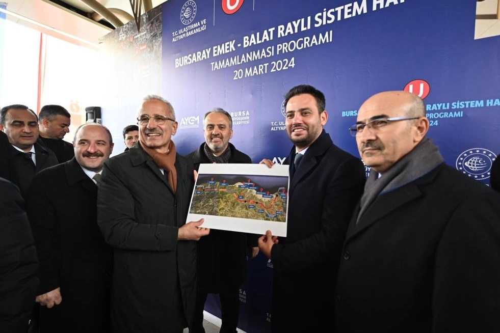 2002 yılından bu yana Cumhurbaşkanımız Sayın Recep Tayyip Erdoğan’ın liderliğinde şehirlerimiz trenlerle birbirlerine bağlarken şehir içi raylı sistemlerini de birbiri ardına hayata geçiriyoruz diyen Ulaştırma ve Altyapı Bakanı Abdülkadir Uraloğlu, “Türkiye Yüzyılında adeta kent için raylı sistem fırtınasını estiriyoruz. Ülke genelinde inşa ettiğimiz kent içi raylı sistem uzunluğumuz 433 km oldu. Değerli Bursalı hemşerilerim sadece İstanbul’da bu sene 34 kilometrelik raylı sistem hattını hayata geçirdik ve Bursa’da bugün buradayız Kocaeli’de hafta sonu yine raylı sistem çalışmalarımızı yürüttük” diye açıkladı. Uraloğlu, İstanbul, Kocaeli ve Bursa’da toplam 47 kilometrelik bir hattın çalışmasını devam ettirdiklerini ifade ederek “Bursa’da hayata geçirdiğimiz Emek-Şehir Hastanesi ve metro hattının bir kısmı Emek istasyonu, Balat istasyonu arasını ve Balat istasyonu tamamlanmasının sevincini yaşıyorum” dedi. Orhangazi‘nin yadigârı, Osmanlı Cihan Devleti'nin ilk büyük başkenti Bursa, başta şanlı tarihimiz olmak üzere sanayinin, ticaretin, tarımın ve turizmin en önde gelen şehirlerinden birisidir. Bu nedenle Bursa’nın ulaşım ve altyapısını güçlendirmek için Bursa’yı geleceğe taşıyacak birçok projeyi birbiri ardına hayata geçirdik ve bundan sonra da yolumuza devam edeceğiz” diye konuştu. Bakan Uraloğlu, 2002 yılından bu yana Bursa’da ulaşım ve iletişim alt yapısına 202 milyar liralık yatırım gerçekleştirdiklerini belirterek “Ulaştırma ve alt yapı bakanlığı olarak bölünmüş uzunluğumuzu 609 km’ye çıkardık. Yine kaplamalı yol uzunluğumuzu 787 km’ye çıkardık. İstanbul- Gebze- Orhangazi İzmir otoyolumuzu bitirdik. Bursa Çevre otoyolunu Bursa-İnegöl-Bozüyük-Ankara sınırı yolumuzu, Bursa Devlet yolu İzmir yolumuzu bitirdik. Önemli güzergahlarımızı tamamladık. Çalı-Kayapa-Hasanağa yolunun ikinci etabını bitirdik. Diğer etapları ile ilgili de yine Büyükşehir belediyemizle gerekli işbirliği içerisinde çalışmalarımızı önümüzdeki dönemlerde yürüteceğiz. Mevcut haliyle 2.9 km bölünmüş yolun 14 kilometresi tek yol olmak üzere 16.9 kilometresi hizmet veren Çalı yolumuzun tamamını inşallah bölünmüş yol haline getireceğiz” dedi.