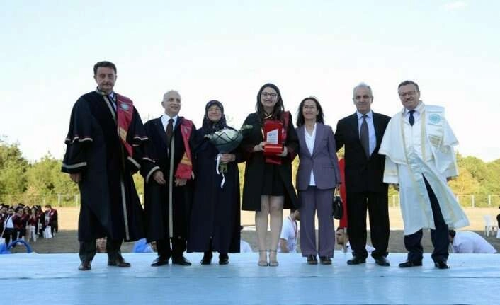 11 ülkede 23 uluslararası mezun Mezuniyet Töreni’nde kürsüye çıkan BUÜ Tıp Fakültesi Dekanı Prof. Dr. Ekrem Kaya, pandemi yükünün azalmasından sonra maskesiz şekilde bir mezuniyet töreni gerçekleştirmiş olmaktan dolayı mutluluk duyduklarını söyledi. 47. Dönem Mezuniyet Töreni ile Türkiye ve dünya sağlık ordusuna yaklaşık 350 hekim daha katacaklarını açıklayan Dekan Prof. Dr. Ekrem Kaya; “Mezunlarımızın arasında Afganistan, Almanya, Azerbaycan, Bulgaristan, İsrail, Rusya, Karadağ, Arnavutluk, İran, Suriye ve Irak’tan olmak üzere 23 uluslararası mezunumuz da bulunmaktadır. Ülkemizde Sayısı 125’i aşan Tıp Fakültelerine alınan öğrenci sayısı her yıl artıyor. Ülkemizde hasta başına düşen doktor sayısı Avrupa Birliği ortalamasının altında olsa da bu açık her geçen yıl hızla kapanıyor ve birkaç yıl içerisinde Avrupa Birliği ortalamasının üzerine çıkacağız. Hal böyleyken işsiz hekimler yaratmamak için Tıp Fakültelerine giriş kontenjanları yavaş yavaş düşürülmelidir. Daha öğrenciyken öğrencilerimizin yurtdışı hayalleri kurması bizleri derinden düşündürmelidir. Son iki yılda salgınla çarpışırken içimizde ağır hastalananlar da olmasına rağmen aramızdan hiçbir akademisyenimiz şikayet etmedi. Fedakarca çalıştık ve tehlikeyi göğüsledik. Eğitim süreçleri içerisinde ailelerin bizlere emanet ettiği öğrencilerimizin her birini kendi evladımız gibi gördük. Bildiklerimizi esirgemeden aktardık. Onlara sadece mesleki bilgi değil, hayatı, profesyonelliği, insanlığı, sorumluluğu ve görev bilincini elimizden geldiğince öğretmeye çalıştık. Onları ilk gün huzurlarınızda giydirdiğimiz beyaz önlükler gibi lekesiz, pırıl pırıl bir şekilde işledik, yapılandırdık ve hayata hazırladık. Bugün onları aldığımızdan daha donanımlı bir şekilde sizlere teslim ediyoruz. Onlar artık ülkemizin ve dünyamızın sağlık ordusunun genç subaylarıdır." dedi. Bursa Büyükşehir Belediye Başkan Vekili ve Bursa Tabip Odası Başkanı dereceye giren öğrencilere hediyeler verirken, 47. Dönem Birincisi olan Dr. Berfin Nazlı Torun Tıp Fakültesi Dekanı Prof. Dr. Ekrem Kaya ile birlikte yaş kütüğüne plaket çaktı. Tören, mezun öğrencilerin anı belgelerini almaları ve kep fırlatmalarının ardından sona erdi.