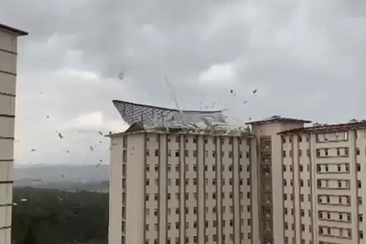Uludağ Üniversitesi kampüsü içinde yer alan yurdun çatısı ise büyük bir gürültü ile uçtu. Uçan çatı bazı odalarda hasara yol açtı. Öğrencilerin dışarı çıkmamaları istendi.
