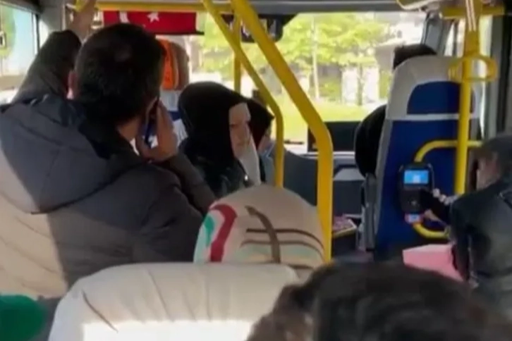 Bursa'da bir dolmuş şoförü, yolcu seçerek ilerlemeye başladı. Bu durum yolcular tarafından fark edilince minibüste tartışma çıktı. anlar kameraya yansıdı.
