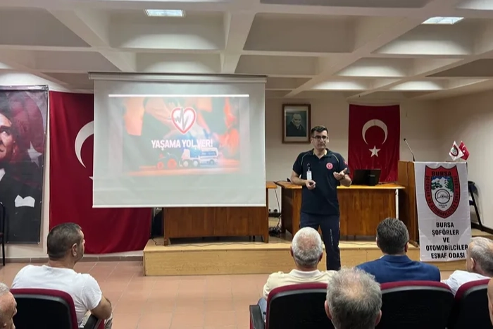 Bursa Şoförler ve Otomobilciler Esnaf Odası’nın ticari araç sürücüleri için düzenlediği eğitime katılan İl Sağlık Müdürlüğü ekipleri, Sağlık Bakanlığı’nın hayata geçirdiği “Fermuar Sistemi İle Yaşama Yol Ver” kampanyası çerçevesinde bilgilendirme gerçekleştirdi. Eğitimde Fermuar Sistemi” ile güvenli ve hızlı bir şekilde acil geçiş koridoru açılmasının önemi vurgulandı.