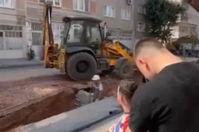 Osmangazi ilçesi Gülbahçe Mahallesi'nde tıraş olan bir vatandaş, yol yapım çalışması izlemek için koltuğu dışarıya çıkardı. Berberini de ikna eden vatandaş, kaldırım üzerinde hem tıraş oldu hem de yol yapım çalışmasını izledi. O ilginç anlar çevrede bulunan bir vatandaş tarafından kaydedildi.