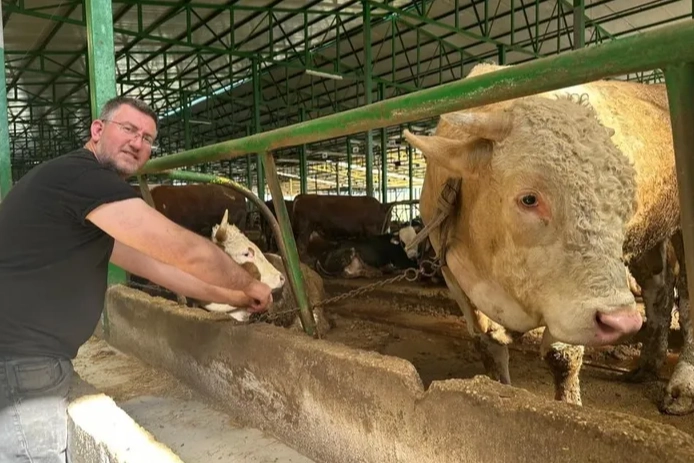 İlçeye bağlı Ürünlü Mahallesi'nde hayvancılık yapan İsmail Oktay, çiftliğin en büyük hayvanını yaklaşık 400 bin liraya satarak müşterilerinin alım gücüne destek olmayı hedeflediklerini belirtti. Kurban Bayramı'nın yaklaşmasıyla hareketlenen pazarlarda, özellikle bir ton ve üzeri ağırlığa sahip kurbanlıklar için talep edilen yüksek rakamlar tüketicilerin tepkisini çekerken, Bursalı besiciden örnek bir yaklaşım geldi. Simental ve şarole melezi olan dev boğa, 7 ortak tarafından satın alındı.
