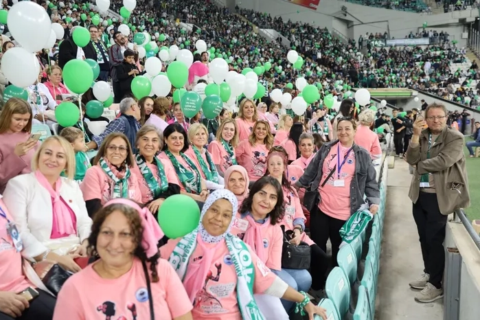 Bursa'da yeşil beyaz tribünlerde pembe farkındalık