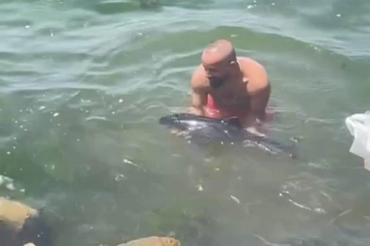 Bursa'nın Kurşunlu sahilinde ağ atan balıkçıların ağına yavru yunus balığı takıldı. Çırpınan yunusu fark eden balıkçılardan biri hemen suya atlayıp, yunus balığını kurtarmak için seferber oldu. Dakikalarca uğraşan balıkçı, yunus balığını ağdan kurtarıp tekrar denize bıraktı. Yunus balığının kurtarılma anı ise kameraya yansıdı.