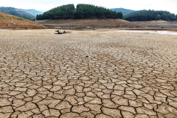 Dronla kaydedilen görüntülerde, iki baraj göletinde de suyun büyük oranda çekildiği, bazı noktalarda çekilmenin 300 metreyi bulduğu ve zeminde derin çatlakların oluştuğu görülüyor.