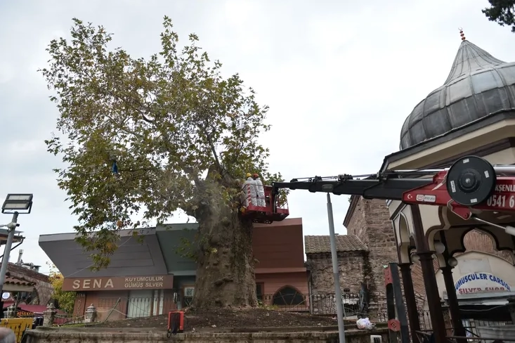 Park ve Bahçeler Dairesi Başkanlığı ekipleri tarafından yapılan incelemede, anıt ağacın açık yarasında çürümüş ve mantarlaşmış bölümler tespit edildi. Hızlı bir şekilde bakım ve restorasyon işlemlerine başlayan ekipler, özel ilaçlarla ‘çürümeye yol açan’ bakterileri temizledi. Ağacın iskeletine teller aracılığıyla destek uygulanırken, son aşamada özel yalıtım malzemesi kullanılarak ağacın açık yarası kapatıldı. Tedavi gören kısım boyanarak çınar ağacının formu yeniden düzenlendi. Bursa Büyükşehir Belediye Başkanı Mustafa Bozbey, Ulu Cami’nin avlusundaki 346 yıllık tarihi çınar ağacının büyük dalının kopmasının ardından ekiplerin hemen bakım ve restorasyon işlemlerine başladığını söyledi. Osmanlı’nın rüyadan cihan devletine geçişinin müjdesi olan çınar ağaçlarının Bursa’nın kadim tarihinin en önemli tanıkları olduğunu söyleyen Başkan Bozbey, Büyükşehir Belediyesi’nin kentin süsü olan anıt ağaçların bakımını düzenli olarak yaptığını hatırlattı. Çevreye, doğaya ve ağaçlara verdikleri önemin altını çizen Başkan Bozbey, kentin 'Yeşil Bursa' kimliğine yeniden kavuşması için kararlılıkla çalışmaya devam ettiklerini vurguladı.