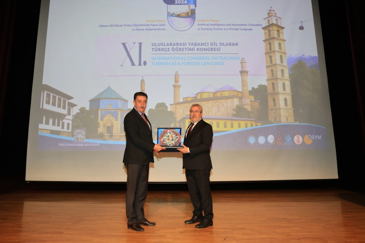 Kongre Yürütme Kurulu Başkanı Prof. Dr. Alparslan Okur ise Türkçenin dünya genelindeki yaygınlığına dikkat çekti. 11 yıl önce başlatılan bu bilimsel yolculuğun Türkçeyi bir dünya dili yapma ülküsüyle sürdüğünü belirtti. Günümüzde sadece dijital bir nesille değil, her adımı yapay zekâya sorgulatan "dijital ötesi" bir kuşakla karşı karşıya olunduğunu ifade eden Okur, bu yeni nesle yönelik dil eğitiminde teknolojinin hızına ayak uydurmanın akademik bir zorunluluk haline geldiğini vurguladı. Herhangi bir ticari kaygı gütmeden, tamamen Türkçeye hizmet etme gayesiyle hareket ettiklerini dile getiren Okur, kongrenin ev sahibi BUÜ’ye ve sürece katkı sunan tüm paydaşlara teşekkürlerini sundu.