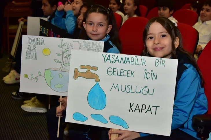 Hayat kaynağı olan suyun doğru kullanımına dikkat çekmek amacıyla Bursa Büyükşehir Belediyesi ve BUSKİ Genel Müdürlüğü tarafından 22 Mart Dünya Su Günü dolayısıyla bir dizi etkinlik düzenlendi. BUSKİ Genel Müdürlüğü binasında gerçekleştirilen etkinliklere, Bursa Büyükşehir Belediyesi Başkanvekili Mehmet Aydın Saldız, BUSKİ Genel Müdürü Mehmet Ercihan Subaşıoğlu, Büyükşehir Belediyesi ve BUSKİ bürokratları ile öğrenciler katıldı. ‘Buzulların korunması’ konulu resim sergisiyle başlayan etkinlikler, ilkokul çocuklarına verilen ‘Su tasarrufu bilinci ve kültürü’ başlıklı seminerle devam etti. Seminerin ardından çocukların oluşturduğu koro, su bilinci konulu şarkılar söyleyerek günün anlam ve önemine dikkat çekti. Programda konuşan Büyükşehir Belediyesi Başkanvekili Mehmet Aydın Saldız, su şehri olarak bilinen Bursa’nın her geçen gün önemli ölçüde su kaybına uğradığını söyledi. Su tasarrufu konusundaki bilinçlendirmenin önemine değinen Saldız, toplumun tüm kesimlerine bu anlayışı yaymak istediklerini ifade etti. Programın sonunda Başkanvekili Saldız ve BUSKİ Genel Müdürü Subaşıoğlu tarafından çocuklara çeşitli hediyeler takdim edildi.