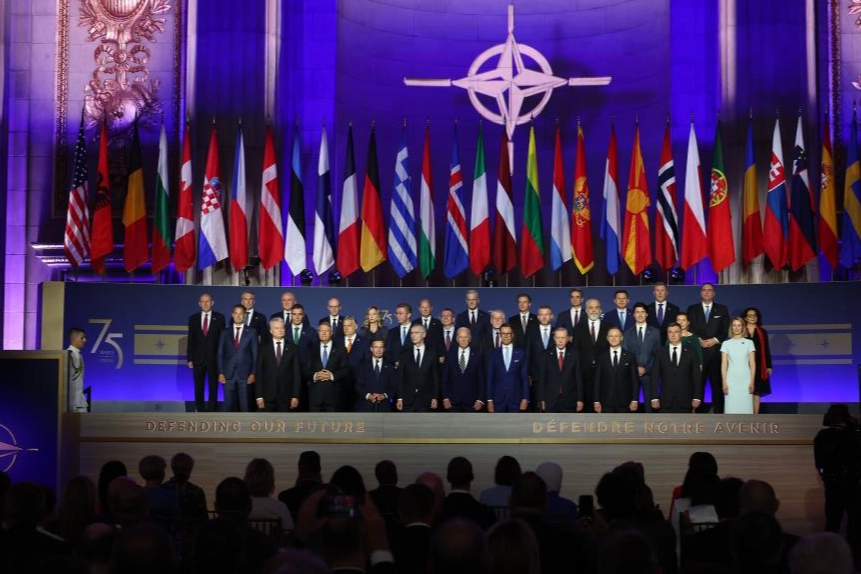 Cumhurbaşkanı Erdoğan, eşi Emine Erdoğan ile Andrew W. Mellon Auditorium'da düzenlenen NATO'nun 75. Yılı Anma Etkinliği'nde, zirveye katılan devlet ve hükûmet başkanlarıyla toplu fotoğraf çektirdi. Programda, İkinci Dünya Savaşı, NATO'nun kuruluşu, Bosna Savaşı, Kırım'ın ilhakı ve Rusya-Ukrayna Savaşı gibi farklı olaylara ilişkin görüntülerin yer aldığı video gösterildi. Etkinlikte, ABD Başkan Joe Biden ve NATO Genel Sekreteri Jens Stoltenberg açılış konuşması yaptı.