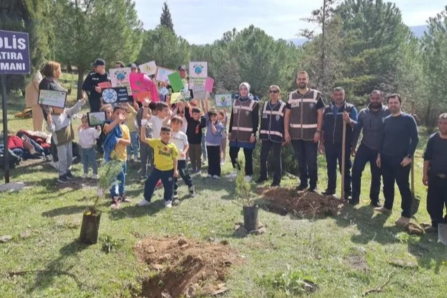 Bursa'da İznik Cumhuriyet İlkokulu ana sınıfı öğretmenleri ve öğrencileri emniyet personelleri ile birlikte 21-26 Mart Orman Haftası etkinlikleri kapsamında çok sayıda fidan diktiler. İznik Belediyesi'nin katkılarıyla Abulvahap mevkiinde düzenlenen fidan dikim etkinliğinde polis hatıra ormanına çok sayıda fidan dikildi.