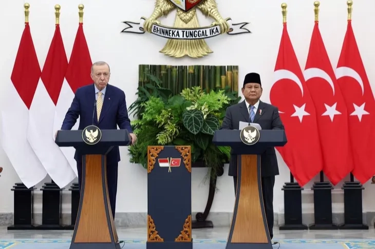 Cumhurbaşkanı Recep Tayyip Erdoğan, Malezya ziyaretinin ardından geldiği Endonezya’da temaslarını sürdürüyor. Cumhurbaşkanı Erdoğan, Endonezya ve Türkiye arasında çeşitli alanlarda anlaşmaların imzalanması töreninin ardından Endonezya Devlet Başkanı Prabowo Subianto ile ortak basın toplantısı düzenledi. Konuşmasına Endonezya’yı G-20 Liderler Zirvesi vesilesiyle 2022’de ziyaret ettiğini ifade ederek başlayan Cumhurbaşkanı Erdoğan, "Bugün de Yüksek Düzeyli İşbirliği Konseyi Birinci Toplantısı vesilesiyle buradayız. Bu sene diplomatik ilişkilerimizin tesisinin 75. yıl dönümünü idrak ediyoruz. Ancak Endonezya ile tarihi ve beşeri bağlarımız 400 yıl öncesine kadar uzanıyor. Bu güçlü yakınlıktan ilham alan ilişkilerimizi 2011 yılında ilan ettiğimiz stratejik ortaklığımız ile taçlandırdık. Bugünkü konsey toplantımızda münasebetlerimizi daha da kurumsallaştırmış olduk" ifadelerini kullandı.