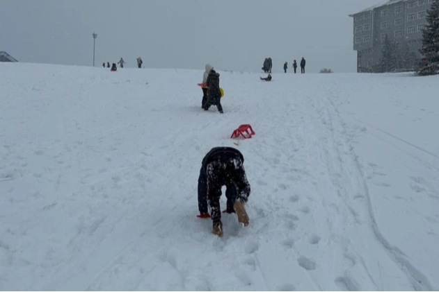 Özellikle aileler ve çocuklar karın keyfini çıkarırken, ortaya renkli görüntüler çıktı. Mart ayının sonuna gelinmesine rağmen etkili olan kar yağışı ise ziyaretçileri şaşırttı.