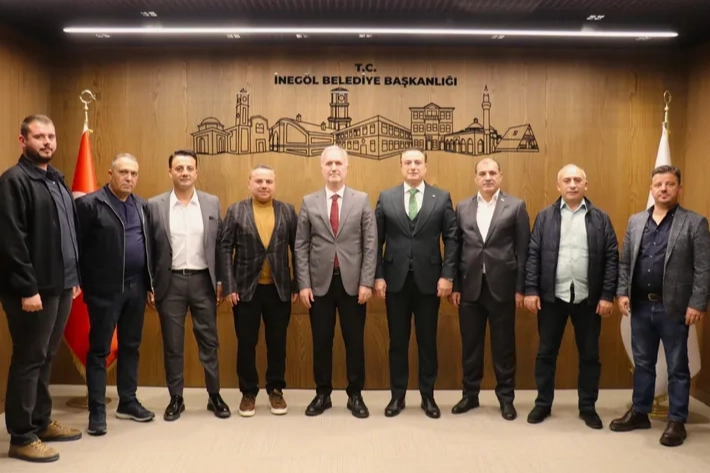 İMSİFED heyetinin gün içindeki ikinci durağı, İnegöl Belediye Başkanı Alper Taban oldu. Ziyarette, Başkan Şeref Demir federasyonun üyeleri ve paydaşlarıyla yürüttüğü ortak projeleri aktarırken, İnegöl’ün altyapı gelişimi, ulaşım avantajları ve yatırım fırsatları da ele alındı. Başkan Taban, İMSİFED, İMSİAD ve İMDER üyelerini İnegöl’e yatırım yapmaya çağırarak, İnegöl’ün büyüme hedeflerini birlikte gerçekleştirmek istediklerini belirtti. Şeref Demir ise, “Federasyon olarak yalnızca yatırım süreçlerinde değil, kentsel dönüşüm, altyapı projeleri ve sürdürülebilir kalkınma alanlarında da yerel paydaşlarla birlikte hareket etmeyi önemsiyoruz. İlçenin potansiyelini en verimli şekilde değerlendirmek ve İnegöl’e değer katmak için her türlü iş birliğine açığız” dedi. Ziyaret sonunda İMSİFED ve İMSİAD YKB. Şeref Demir, İnegöl Belediye Başkanı Alper Taban’a teşekkür plaketini takdim etti.