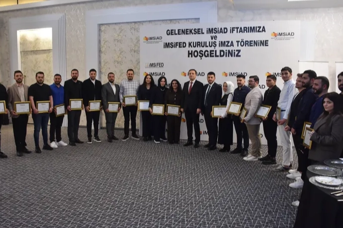 Programın son bölümünde de İMSİAD Yönetim Kurulu Başkanı Şeref Demir ve protokol üyeleri yeni Genç İMSİAD’ın kurucu üyelerine berat takdim etti.