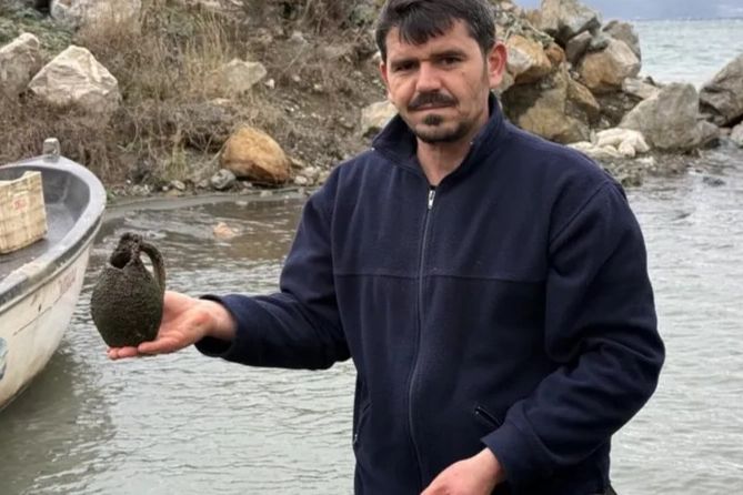Bursa'da kuraklığın etkisiyle su seviyesinin düştüğü İznik Gölü'nde balıkçıların ağına küp takıldı. Göllüce Mahallesi'nde yaklaşık 30 yıldır balıkçılık yapan Osman Erim, sabah saatlerinde kayığıyla göle açıldığı sırada ağlarına takılan garip bir cismi fark etti. Balığa benzemeyen nesneyi incelemek için hızla kıyıya çıkan Erim, ağları açtığında karşısında tarihi olduğu düşünülen bir küp buldu. Olayın duyulmasıyla birlikte mahalle sakinleri de kıyıya akın ederken, bulunan küp yetkililere teslim edildi.