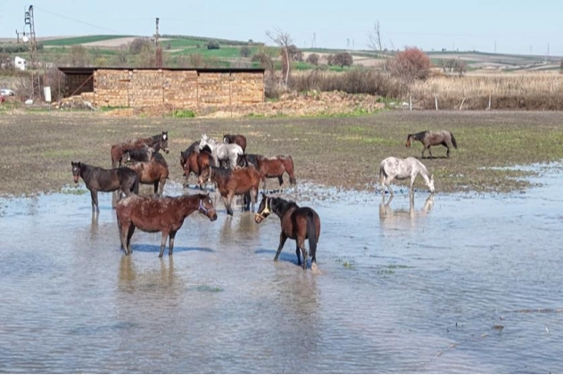 At çiftliğinin çalışanı Paşa Şıkıyev, 2017'den bu yana Karacabey'de tavlada çalıştığını belirterek, "Göl suları ilk kez buraya kadar geldi. Bu şekilde hiç görmemiştim. Atları sürekli ahırda tutamayız mecbur gezindikleri alana çıkardık. Orası da su altında ama yapacak bir şey yok bir süre böyle idare edeceğiz" dedi.
