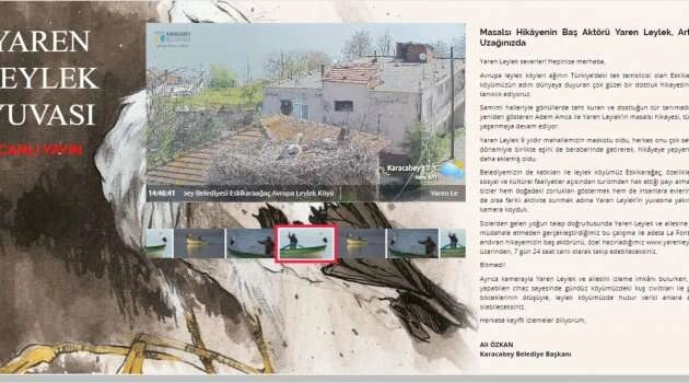Karacabey Belediyesi tarafından, Avrupa Leylek Köyü Eskikaraağaç’a konulan kamera sistemi ile ünü dünyaya yayılan Adem Amca ve Yaren Leylek hikayesinin kahramanı Yaren Leylek, kendisini merakla bekleyen herkesin evlerine konuk oluyor. Yaren Leylek severlerin yoğun talebi sonrası harekete geçen Karacabey Belediyesi, Yaren Leylek ve eşinin bulunduğu yuvanın internet üzerinden 7/24 canlı yayın ile izlenebilmesi hedefiyle, www.yarenleylek.com sitesini devreye aldı.