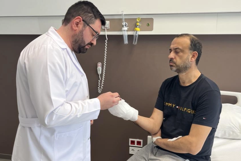 Yurt dışında kuşları için kümes yapmak isteyen kişinin parmağı, tırnak kısmından sıkışarak koptu. Kopan parmağını buz poşetleriyle soğuk tutarak Türkiye'ye gelen adamın, 14 saat sonra dikilen parmağıyla yüzü güldü.