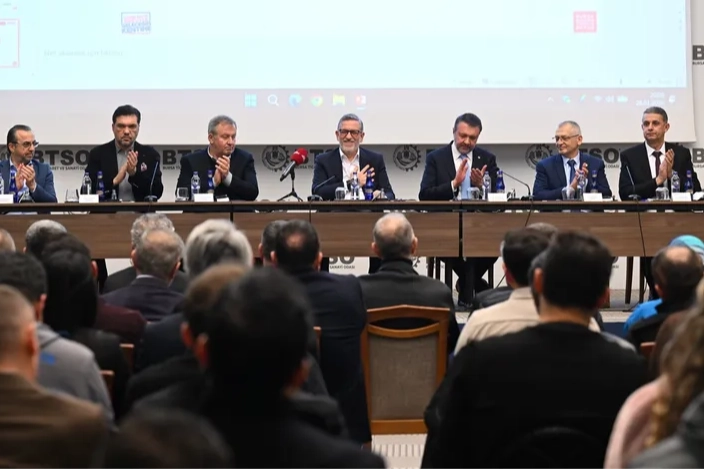 Bursa’da makine sektörü temsilcileri, Bursa Ticaret ve Sanayi Odası (BTSO) ev sahipliğinde düzenlenen 8. ve 35. Meslek Komiteleri Genişletilmiş Sektörel Analiz Toplantısı’nda bir araya geldi. BTSO Ana Hizmet Binası’nda gerçekleştirilen toplantıya sektör temsilcileri yoğun ilgi gösterdi. 700’ü aşkın makine sektör temsilcisinin katıldığı toplantıda konuşan BTSO Yönetim Kurulu Başkanı İbrahim Burkay, makine sektörünün sanayi, üretim ve ihracat odaklı kalkınma modelinin temel taşı olduğunu vurguladı. BTSO olarak bu farkındalıkla hareket ettiklerini belirten İbrahim Burkay, “Üretimle, sanayiyle ve ihracatla kalkınmayı hedefleyen her ülkenin kendine yetebilen yerli ve milli teknolojiye sahip olması gerekiyor. Aksi halde küresel rekabette varlığınızı sürdürebilmeniz mümkün değil. Makine sektörümüz de bu anlamda stratejik bir konuma sahip. Biz stratejik planlarımızda bunu çok net ortaya koyduk ve makine sektörünü en başa yazdık.” diye konuştu.