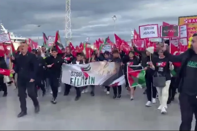 Burgaz Gençlik ve Yardımlaşma Derneği, Filistin’e destek amacıyla yürüyüş gerçekleştirdi. Mudanya BUDO İskelesi önünde toplanan katılımcılar, "Filistin özgürlüğü için gökyüzüne ses veriyoruz" sloganı altında Mütareke Meydanı’na kadar yürüdü. Ellerinde Türk ve Filistin bayrakları taşıyan grup, İsrail’in saldırılarını protesto ederek Filistin halkına destek mesajı verdi.