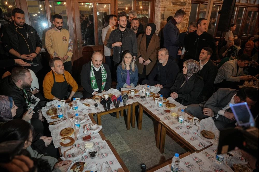 AK Parti Bursa Milletvekili ve TBMM Sanayi, Ticaret, Enerji, Tabii Kaynaklar, Bilgi ve Teknoloji Komisyonu Başkanı Mustafa Varank'ın sosyal medyadan yaptığı, ''Bu Ramazan da geleneksel sahurumuzda buluşuyoruz. Bu gece saat 02.00'de herkesi Bursa Abdal Meydanı'nda sahur yapmaya bekliyoruz. Tabi ki tahanlı, simit ve çay benden, muhabbet sizden' paylaşımının ardından çok sayıda vatandaş, fırınların önüne geldi. Bursa'nın geleneksel lezzeti tahanlı, simit ve çay eşliğinde vatandaşlarla birlikte sahur yapan Varank, herkesin Bursa'yı gezip görmesi gerektiği söyledi. Sahur buluşmasının Bursa'da bir gelenek haline geldiğini belirten Mustafa Varank, "Bursalı hemşehrilerimiz ve birçok vatandaşımız bu meydana gelip Ramazan ayında sahur yapıyor. Biz de hem bu geleneği devam ettirmek hem de vatandaşlarımızla beraber olabilmek için bu akşam buradayız. Sahur için bir araya geldik, sağ olsun kıymetli hemşehirilerimiz, hatta yakın illerden vatandaşlarımız bizim çağrımıza icabet etti. Burada güzel bir şekilde sahurumuzu yaptıktan sonra ibadetimize devam edeceğiz. Bursa, Türkiye'nin kadim şehirlerinden bir tanesi, birçok alanda Türkiye'nin öncü şehirlerinden. Aslında endüstrisiyle bilinen bir şehir ama tarihi, kültürü, turizmi ve gastronomisiyle aslında Türkiye'nin en önemli şehirlerinden bir tanesi. Biz de farklı alanlarda şehrimizi tanıtmaya gayret ediyoruz. Her fırsatta bir yandan vatandaşlarımızla bir araya gelmeye çalışırken bir yandan da şehrimizin reklamını yapıyoruz. Bu akşam da Bursa'nın artık bir geleneği olan Abdal'da sahurdayız. Sağ olsun arkadaşlarımız bu güzel ikramları vatandaşlarımızla paylaşıyor. Biz bu geleneği önümüzdeki dönemlerde de devam ettireceğiz. Burada Bursa Ticaret Sanayi Odası Başkanı İbrahim Burkay bizimle beraber, ondan da bir söz aldık. Nasıl biz bu akşam vatandaşlarımızı davet ettiysek onlara ikramda bulunuyorsak önümüzdeki dönemde de başkanımızda vatandaşlarımızı davet edecek. Biz buradan şu çağrıyı yapalım. Bursa'ya gelip Bursa'yı görün, Bursa'yı gezin. Bursa'nın tarihiyle, kültürüyle beraber inşallah bu şehri tanıyıp ülkemizin her tarafı çok güzel ama biz Bursa'nın en güzel şehirlerinden biri olduğuna inanıyoruz. İnşallah gelenek ve göreneklerimizde de bu şehri tanıtmaya devam edeceğiz" şeklinde konuştu.